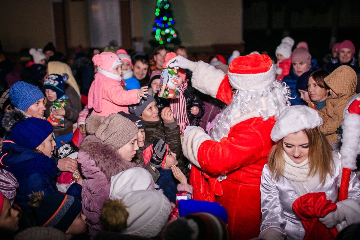 Со всех концов села сбегаются дети с родителями. Под музыку и поздравления Деда Мороза со Снегурочкой, зажигают огни елки. Дети рассказывают подготовленные стихи, поют и танцуют вместе с неожиданными волшебными гостями. Кончено же, каждый из них получает от Деда Мороза подарки и сладости. Апогеем праздника становится еще один сюрприз – красочный фейерверк.