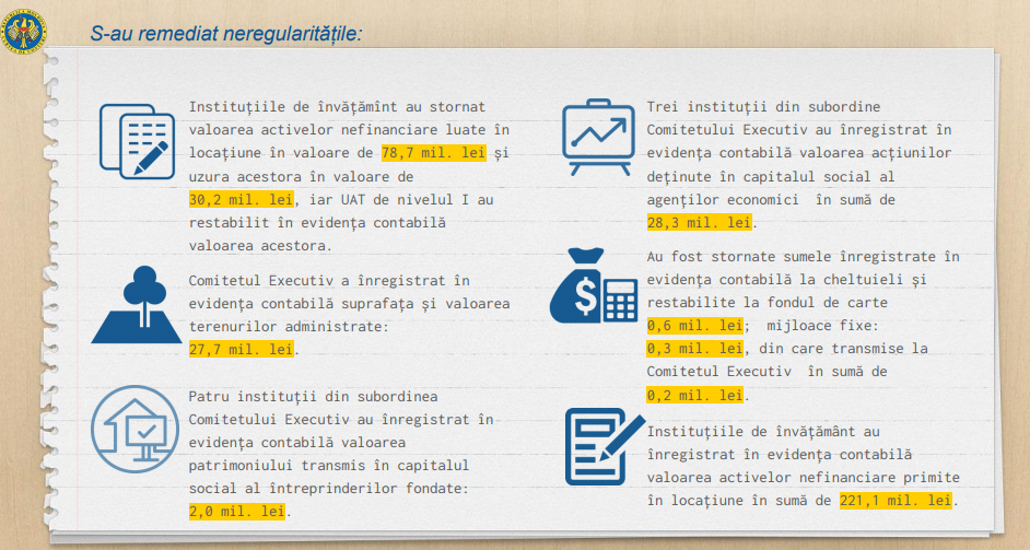 Neregularitățile remediate. Sursa: Curtea de Conturi