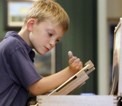 Мальчик просыпается в 6 утра и сразу же принимается рисовать, затем идет в школу, а по возвращении снова встает за мольберт.