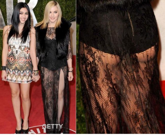 La petrecerea de dupa decernarea premiilor Oscar din acest an,Madonna a gafat introzitor cu o tinuta transparenta, o combinatie intre body si rochie.