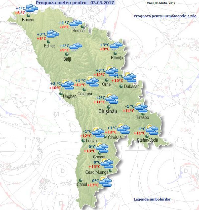 În sudul țării va fi ceva mai cald, astfel ziua vor fi +13 grade cu soare, iar noaptea până la 0..+1 grade.