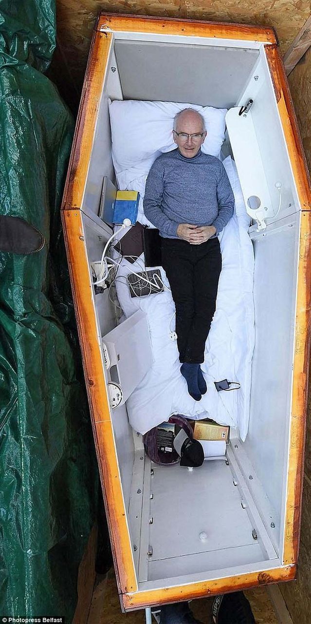 Житель города Белфаст (Северная Ирландия) на три дня переехал в гроб, чтобы помочь людям, которые страдают от вредных привычек или депрессии. Об этом сообщает издание Belfast Live.