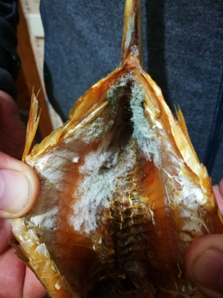 Ajuns acasă, acesta a desfăcut pachetul cu produsul cumpărat, însă a rămas dezgustat: în interior peştele avea mucegai.