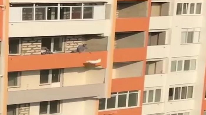 Câţiva muncitori, care făceau reparaţie într-un apartament din Capitală, au fost surprinşi în timp ce aruncau peste balcon saci plini cu deşeuri.