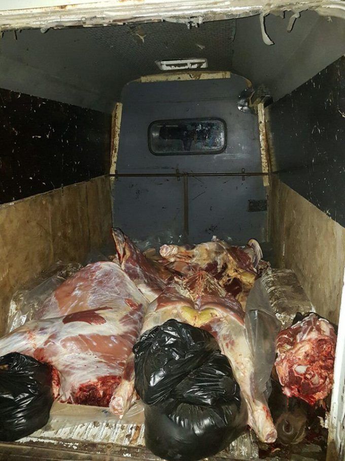 În urma verificării automobilelor bărbaților de 30, 37 și 43 de ani, locuitori ai raioanelor Nisporeni, Ștefan Vodă și Criuleni, a fost depistată, în total 9 carcase de porc și 2 de bovină. Întrebați, șoferii au recunoscut că întreaga cantitate de carne urma să fie comercializată în piața centrală din capitală.