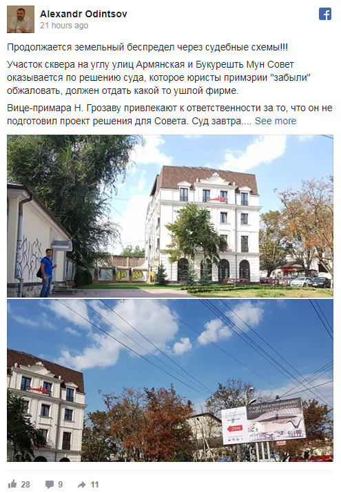 – Оказывается, что по решению суда, которое юристы примэрии “забыли” обжаловать, мунсовет должен отдать его какой-то ушлой фирме. Нистора Грозаву привлекают к ответственности за то, что он не подготовил проект решения для совета. Именно на этом месте планировалась установка бюста Манук-бею, – возмутился Одинцов.