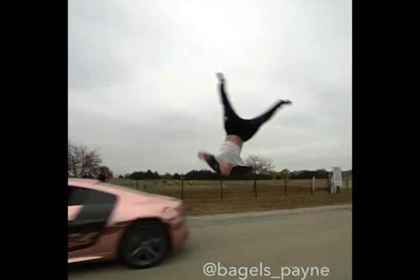 На видео Пейн пытается сделать сальто над несущимся на него спорткаром. Проезжающий автомобиль задевает блогера во время исполнения трюка, и молодой человек с криком падает на асфальт. Тем не менее, он тут же встает и, прихрамывая на правую ногу, заявляет, что с ним все в порядке. «Мне повезло отделаться парой синяков. Ничего серьезного. На сегодняшний день это самая безумное, что я делал в своей жизни», — признался Пейн в подписи под роликом.