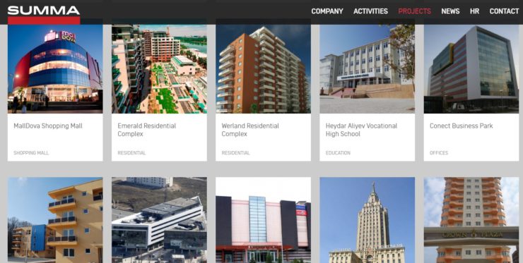 În portofoliul companiei se numără mai multe edificii construite în Republica Moldova, precum ar fi centrul comercial Shopping MallDova, complexul rezidențial Crown Plaza, Hotelul Leogrand și spitalul Medpark. Precizăm că Summa Group este și coproprietar al Shopping Malldova.