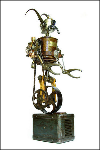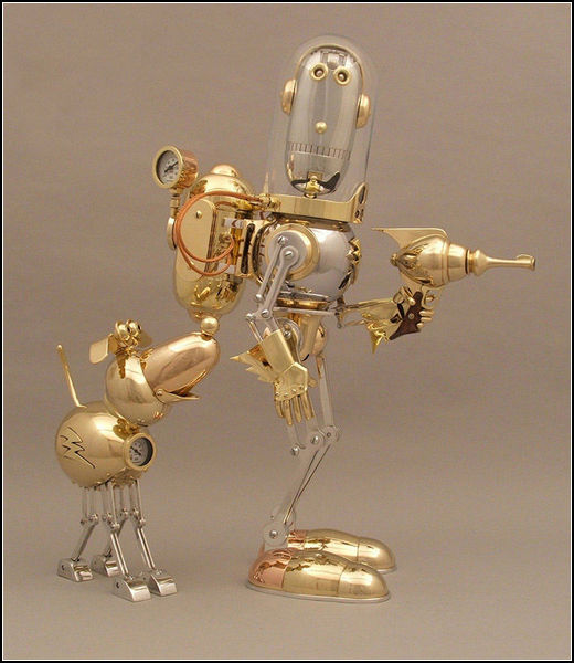 «Слава роботам! Убить всех человеков!» - это лозунг знаменитого робота Бендера из мультсериала Футурама. Но проблема порабощения человечества машинами, похоже, совершенно не волнует многих приверженцев стиля стимпанк. Они вдохновенно создают все больше и больше новых моделей роботов.