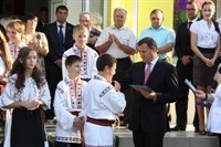 În cadrul ceremoniei, elevii au cîntat şi au spus poezii. De asemenea, a evoluat ansamblul de dansuri populare „Budeştenii".