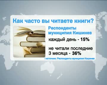 Только девять из ста наших сограждан читают каждый день, указывают данные "Барометра общественного мнения" за май 2011 года. Чуть выше этот показатель у жителей столицы – 15 процентов кишиневцев читают каждый день. Тем не менее, 36 процентов жителей Кишинева не прочитали ничего за последние три месяца.