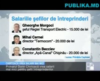 Ar fi bine să renunţe benevol la câteva mii de lei din leafă, mai ales că nu trăiesc din salarii. O recunoaşte chiar primarul Capitalei, Dorin Chirtoacă, care a făcut acest îndemn pentru şefii subdiviziunilor municipale, cu salarii ce depăşesc 12-13 mii de lei.Potrivit unei hotărâri mai vechi de Guvern, salariile şefilor de întreprinderi depind de numărul angajaţilor. De exemplu, şeful Regiei Transport Electric are în jur de 15 mii de lei, iar salariile directorilor "Termocom" şi „Apă-Canal" ajung la 20 de mii de lei. Chiar dacă legea le permite lefuri mai mari, totuşi, Chirtoacă le recomandă altceva.