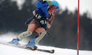 Горнолыжница совершила спуск в платье и с ребенком на руках