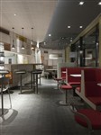 Comenzile vor putea fi date de la un terminal, urmând ca mâncarea să fie adusă la masă de un angajat al restaurantului. Ambianţa luminoasă, calitatea acustică excepţională, dar şi materialele folosite oferă un confort rar întâlnit.