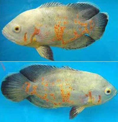 Этот астронотус плавает в аквариуме в Россендейле, Ланкашир. На одном боку у него написано «Мохаммед», а на другом - «Аллах».