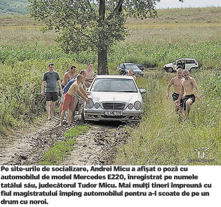 Potrivit unor documente obţinute de la REGISTRU, pe numele lui Tudor Micu mai sunt înscrise două automobile, un Mercedes E220 şi un BMW 525, de culoare vişinie, pe care nu le-a declarat în 2012. În anii trecuţi, magistratul a condus de mai multe ori aceste automobile când a trecut frontiera spre România şi spre Ucraina. Mai nou, automobilul Mercedes E220 este utilizat mai mult de fiul judecătorului, Andrei Micu, de 25 de ani, care, în 2012, şi-a luat licenţa de avocat. Pe site-urile de socializare, Andrei Micu a afişat o poză cu acest Mercedes, din care se vede cum mai mulţi tineri, îmbrăcaţi doar în pantaloni scurţi, împing automobilul pentru a-l scoate de pe un drum cu noroi.