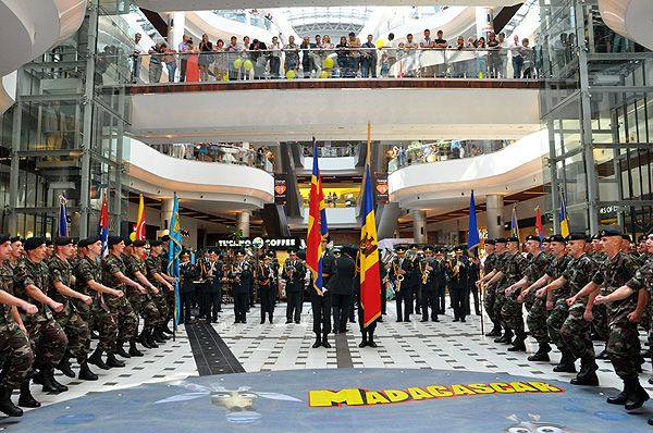 У главного входа в торговый центр были установлены военные транспортные средства, а внутри – стенды с военным оборудованием, которое используется в национальных и международных миссиях. Кроме того, посетители смогли увидеть выставку исторических флагов и фотографий, сделанные прапорщиком адъютантом Виталием Иову.
