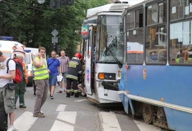 Два трамвая столкнулись сегодня утром в центре польского города Вроцлав на Доминиканской площади.