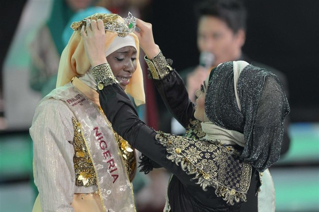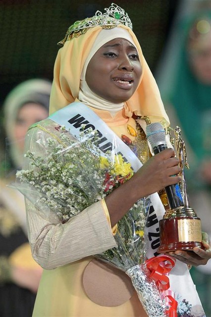 Во время выбора "Мусульманки мира" не обошлось без слез, как на любом другом конкурсе красоты. Услышав свое имя, Обабия Айша Аджиболы преклонила колени прямо на сцене и возблагодарили Аллаха. Она плакала и молилась, не сдерживая эмоций.