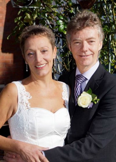 Как и положено на свадебной церемонии, жених в костюме, а Джанет - в белое платье с фатой. Кроме того, в ее руках был букет невесты.